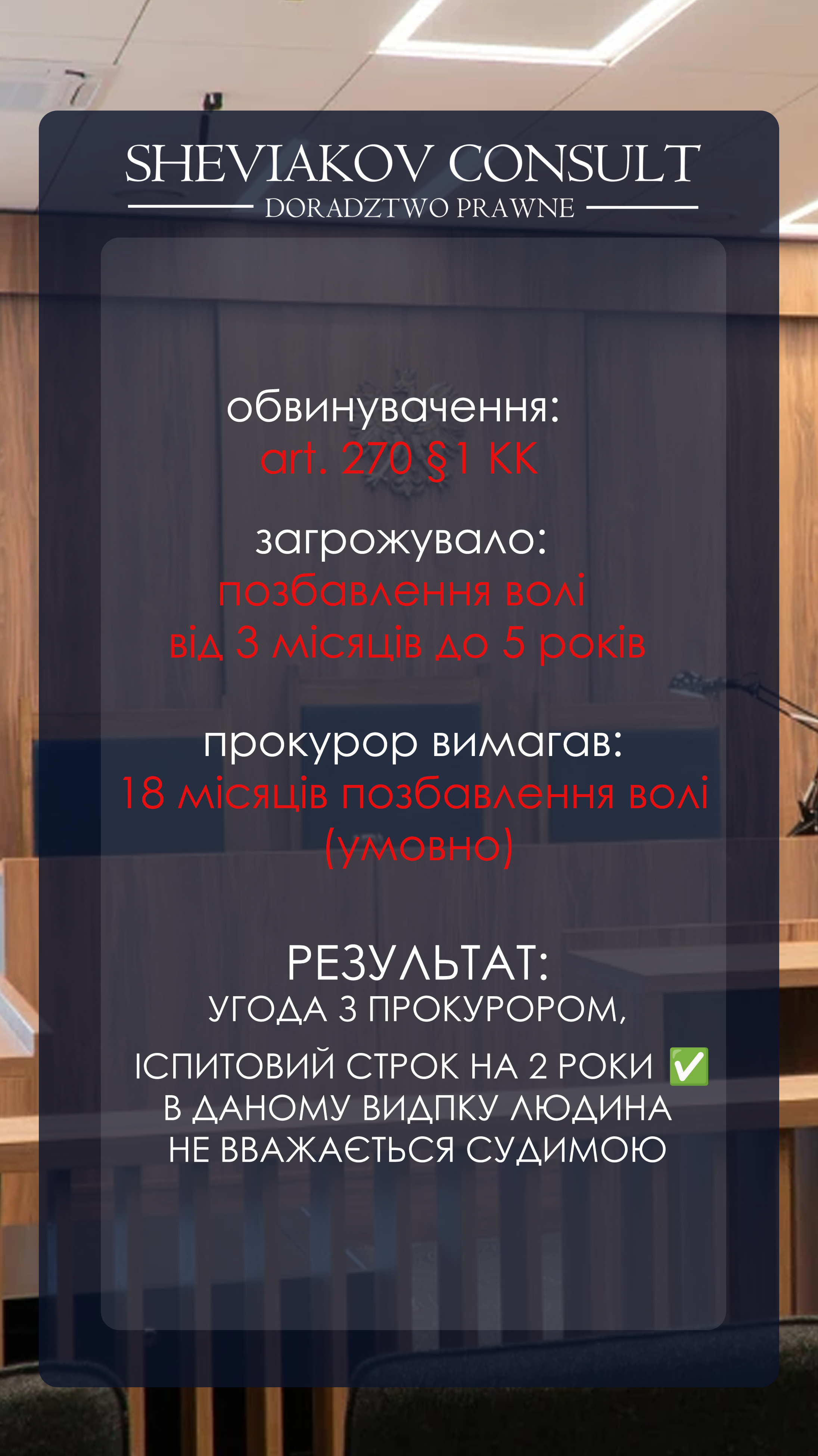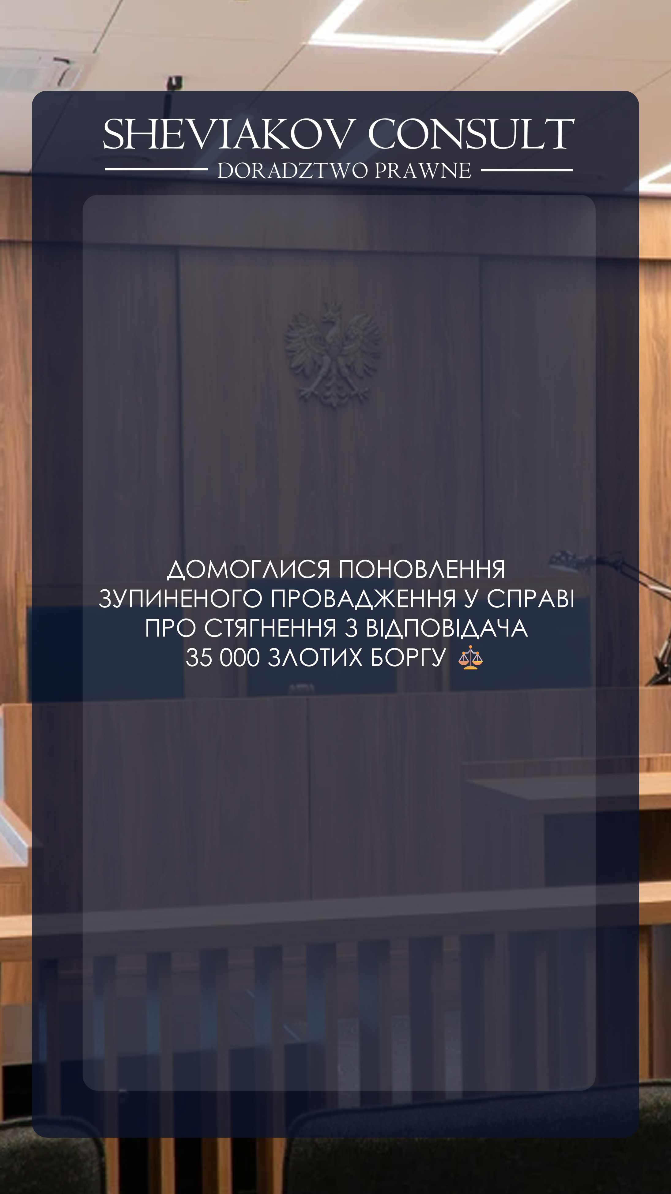 Блок показывает, как правовая стратегия Sheviakov Consult реализуется в процессуальных документах и судебных актах: уголовная защита, депортационные процедуры, пенитенциарные ходатайства и взыскание.