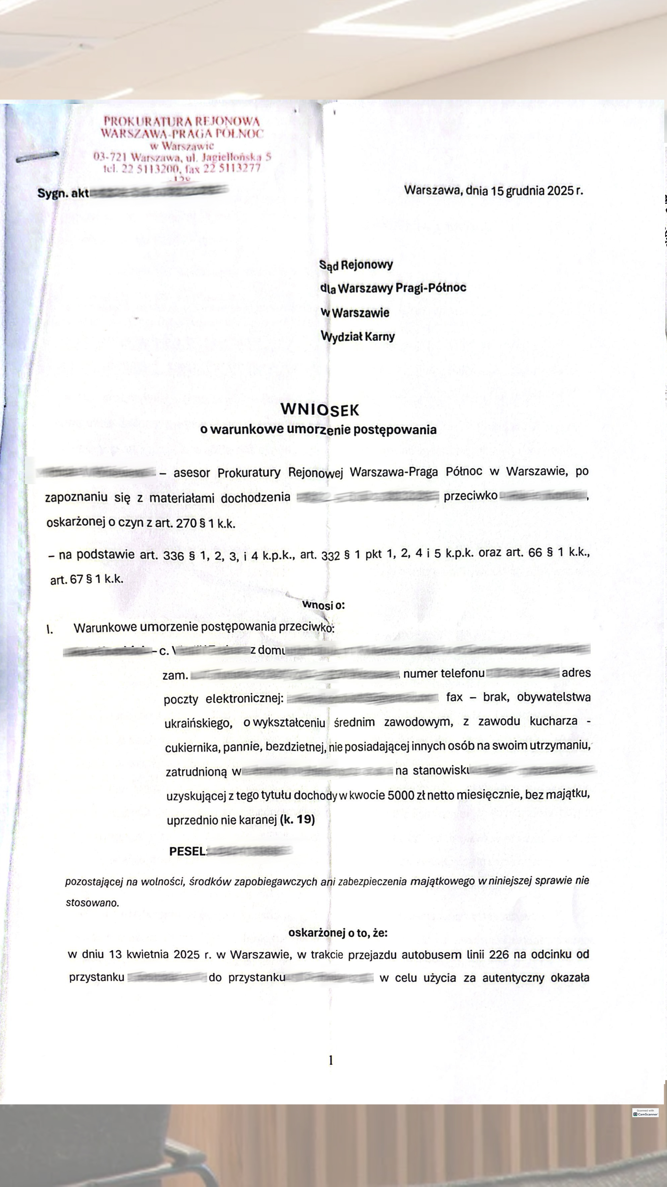 Обезличенный приговор Sad Rejonowy Warszawa Praga-Polnoc подтверждает процессуальный статус и квалификацию эпизода. Материал отражает документальную основу правовой позиции защиты.