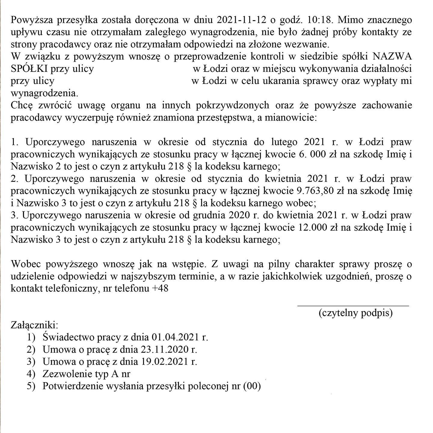 Для на сайте pip.gov.pl, нужно выбрать раздел e-skarga и конкретный регион. Подразделения Инспекции труда есть в каждом крупном городе Польши. Далее появится электронный формуляр, которой необходимо заполнить.