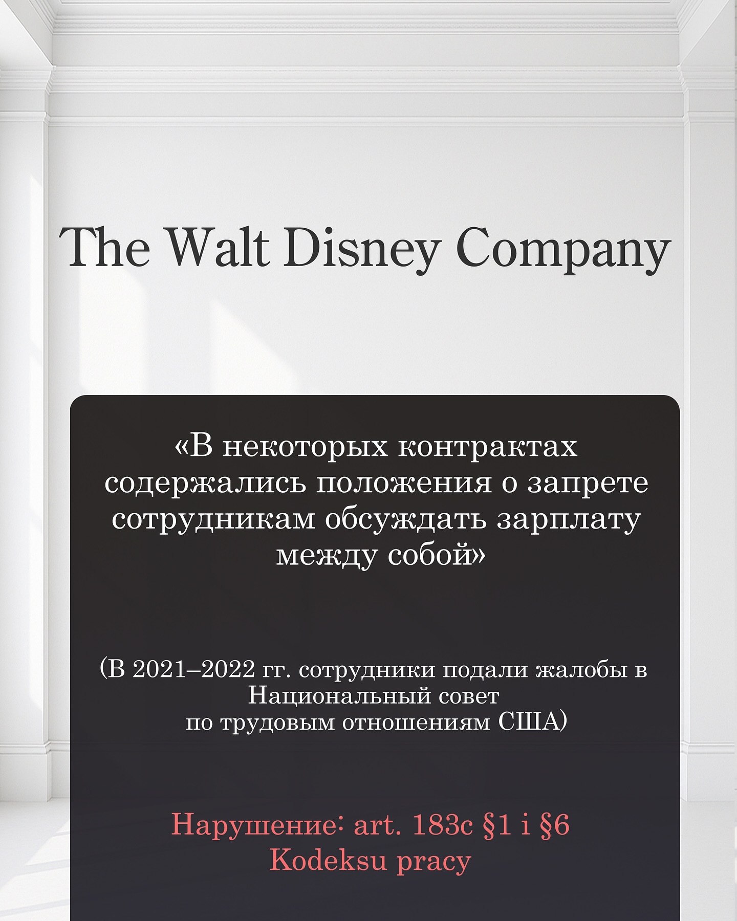 Нарушение: art. 101² §1–3 Kodeksu pracy.
