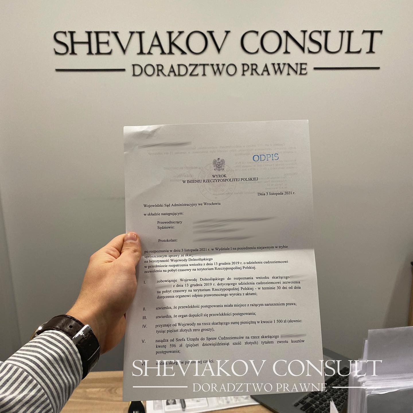 12.05.2021 до нас звернулася сім'я іноземців у зв'язку з довгим очікуванням на рішення щодо карт побуту у місті Вроцлав. Чоловік із дружиною та маленькою дитиною чекали на карти побуту з 13 грудня 2019 року. Наприкінці травня ми підготували 3 скарги на бездіяльність та поінформували Ужонд, що у разі подальшої бездіяльності буде подано позов до Суду.