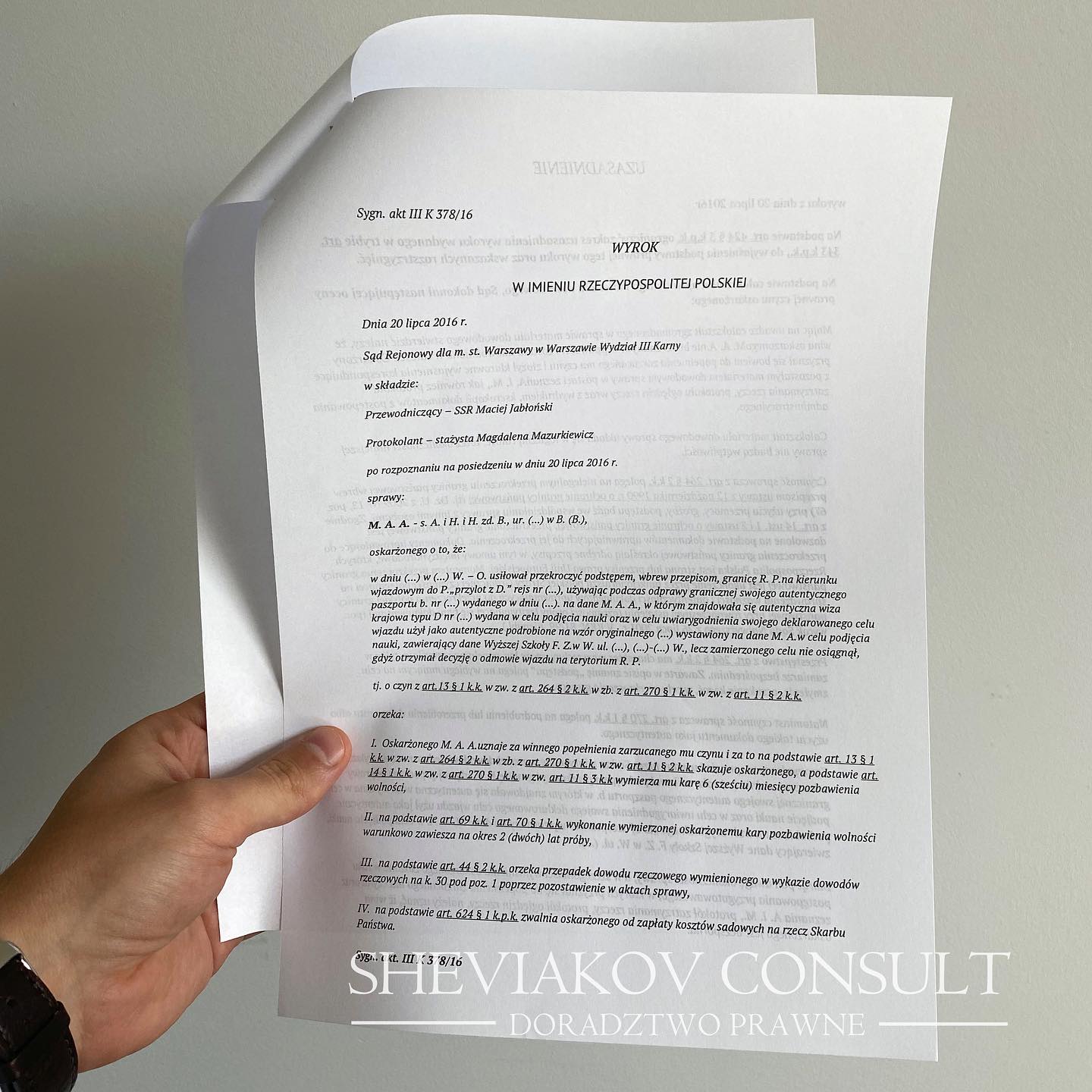 У практиці саме такі наслідок чекають на іноземців, які вирішили скористатися незаконними послугами для введення в оману державних органів Польщі (Art. 264, 270, 272, 273 KK).