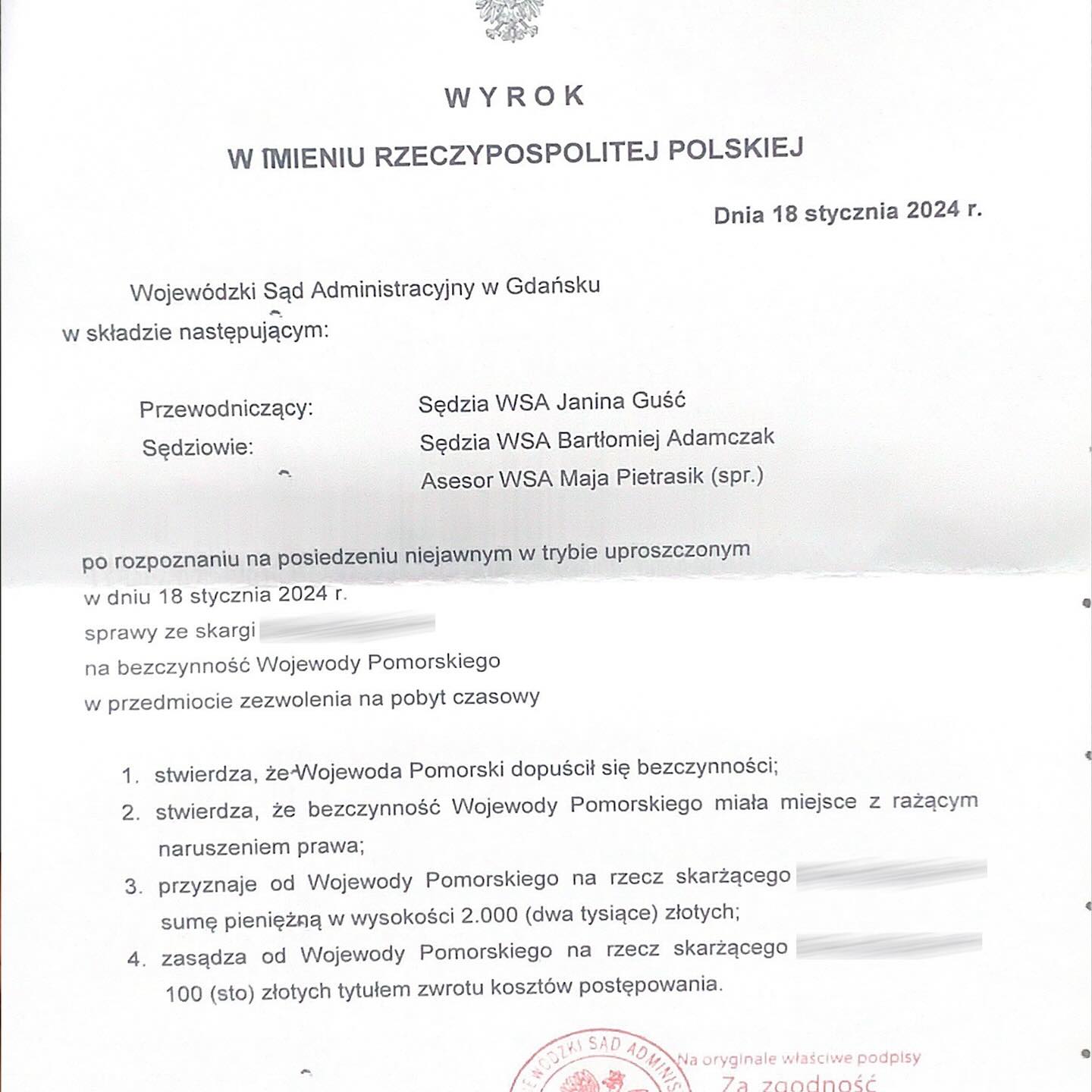 1. Написання скарги на бездіяльність (Skarga na bezczynnosc) для прискорення виклику на відбитки пальців або видачі рішення (якщо було подано поданий пакет документів) - 200 злотих ?
