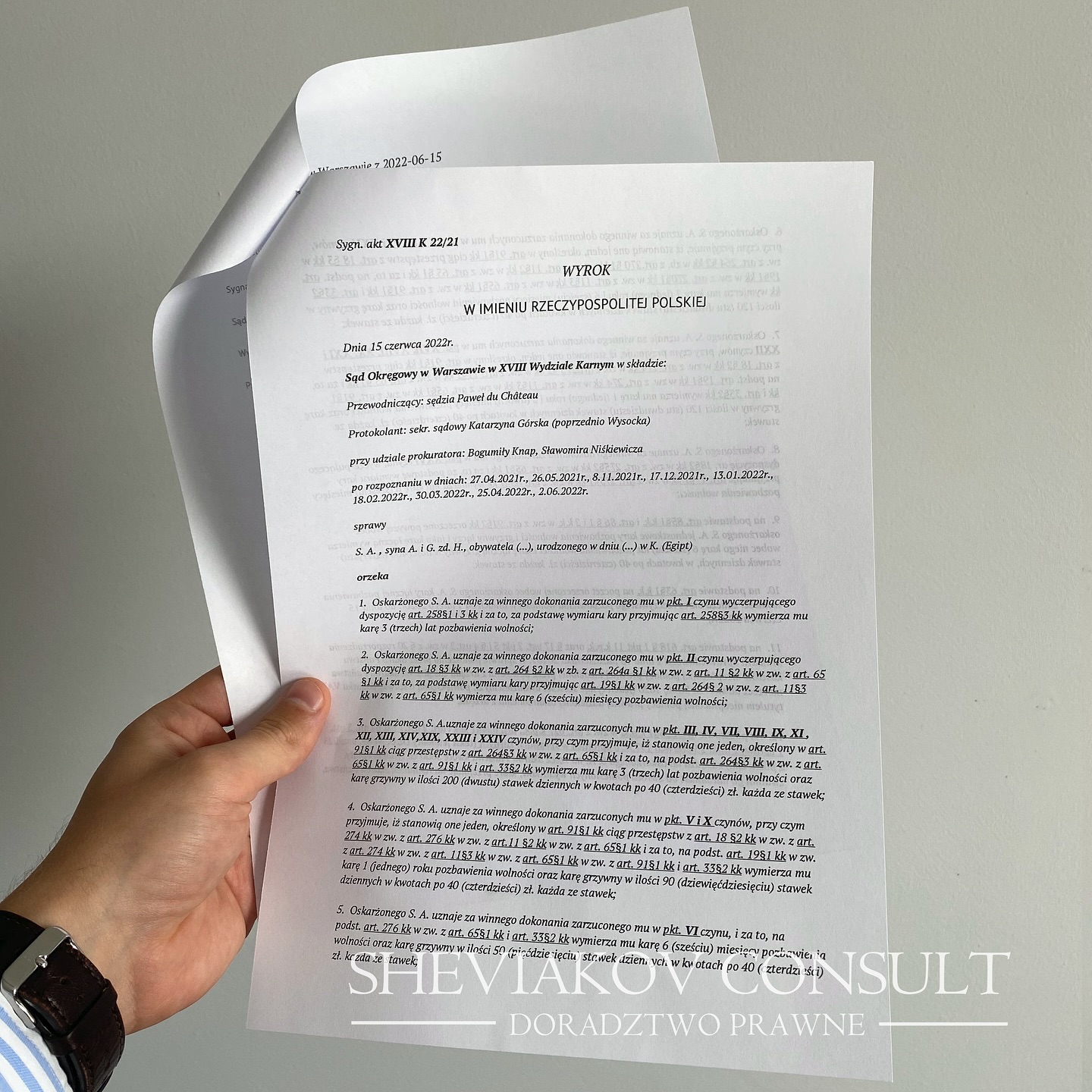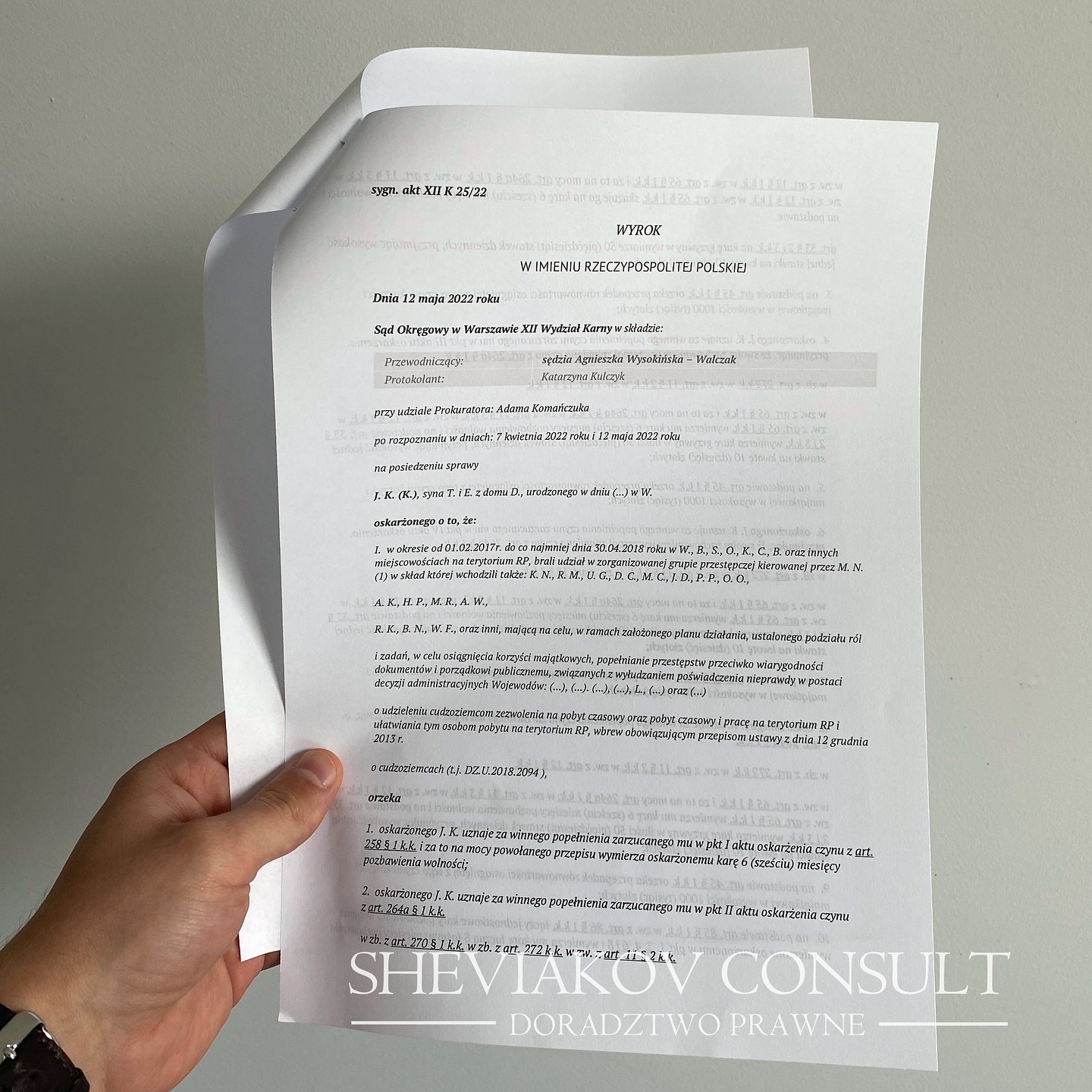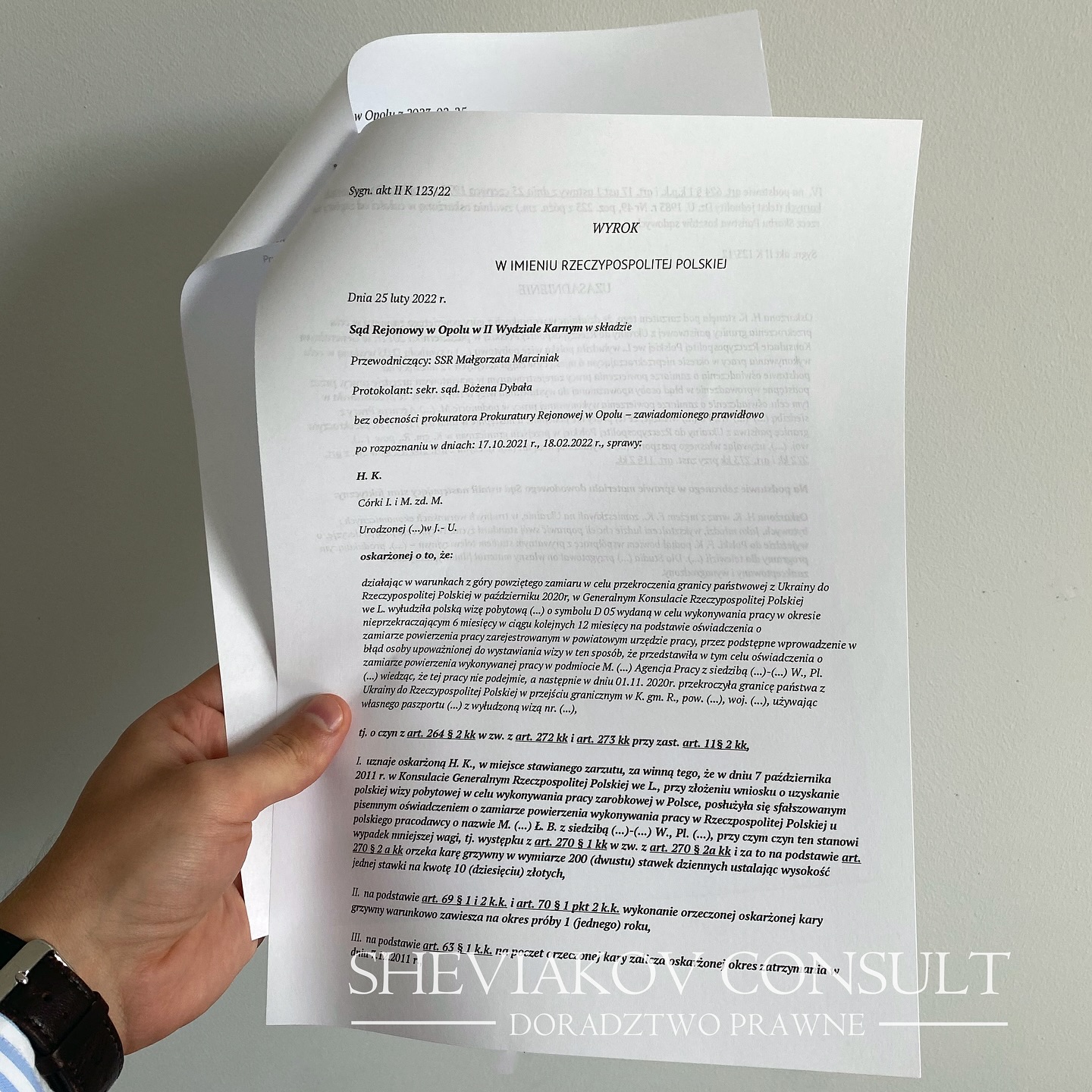 У практиці саме такі наслідок чекають на іноземців, які вирішили скористатися незаконними послугами для введення в оману державних органів Польщі (Art. 264, 270, 272, 273 KK).