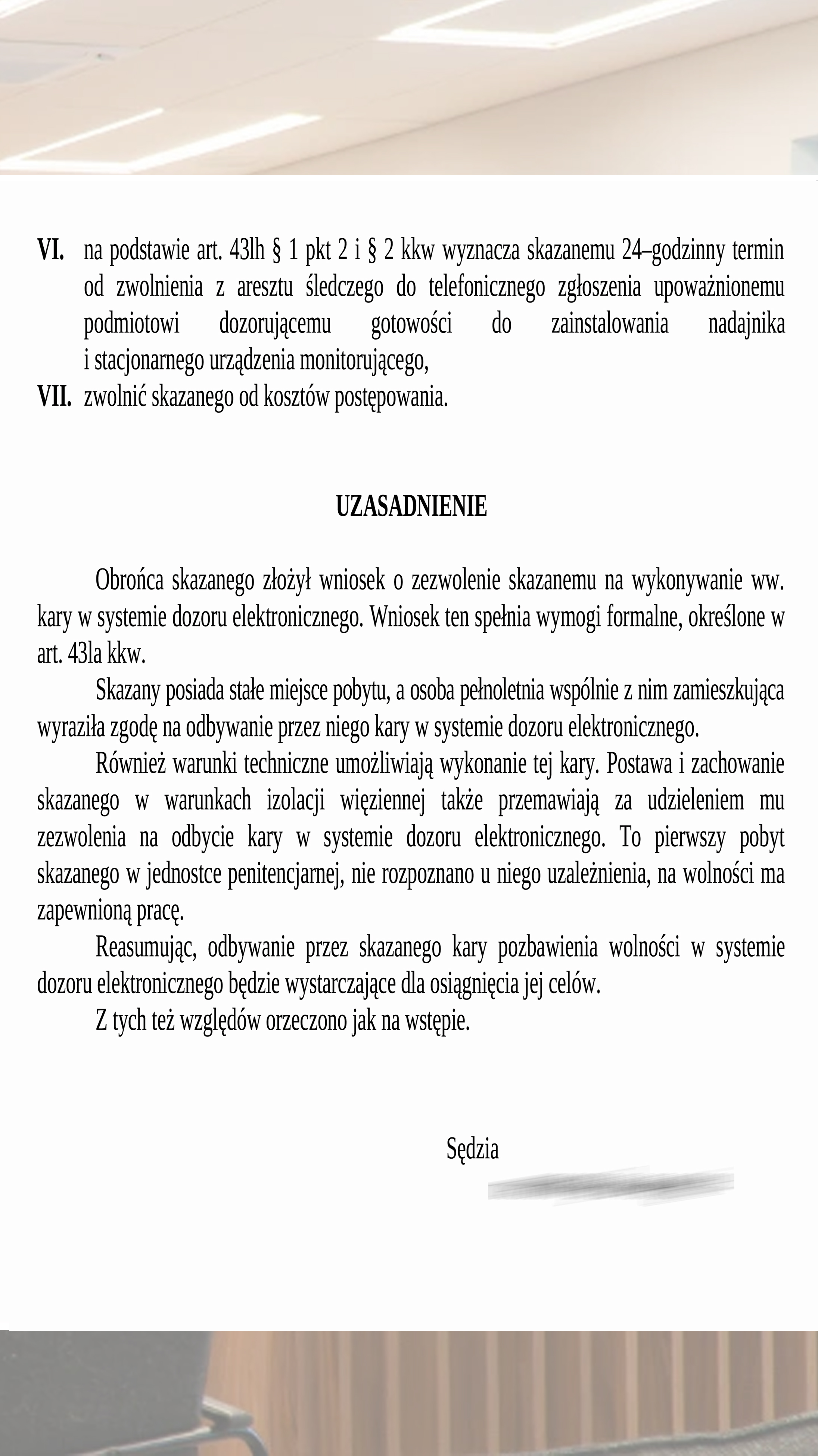 В обосновании решения подтверждены формальные условия для SDE: стабильное место проживания, организационная готовность и контроль исполнения. Документ завершает пенитенциарный блок дела.