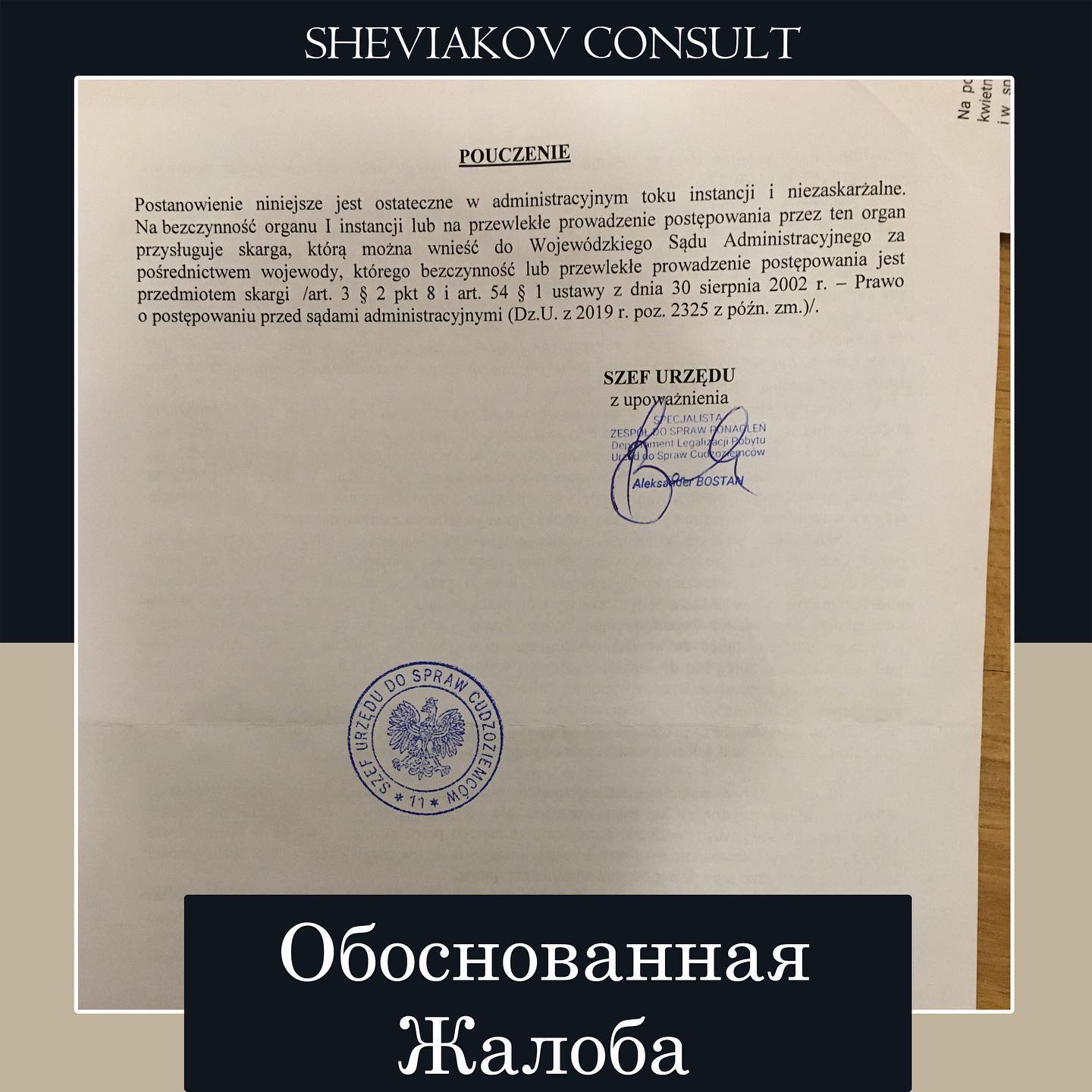 Перед выдачей решения 16.10.2020 мы получили ответ от Szefa Urzedów w Warszawie в котором он признал, что дело рассматривали слишком долго и жалоба являться обоснованной.