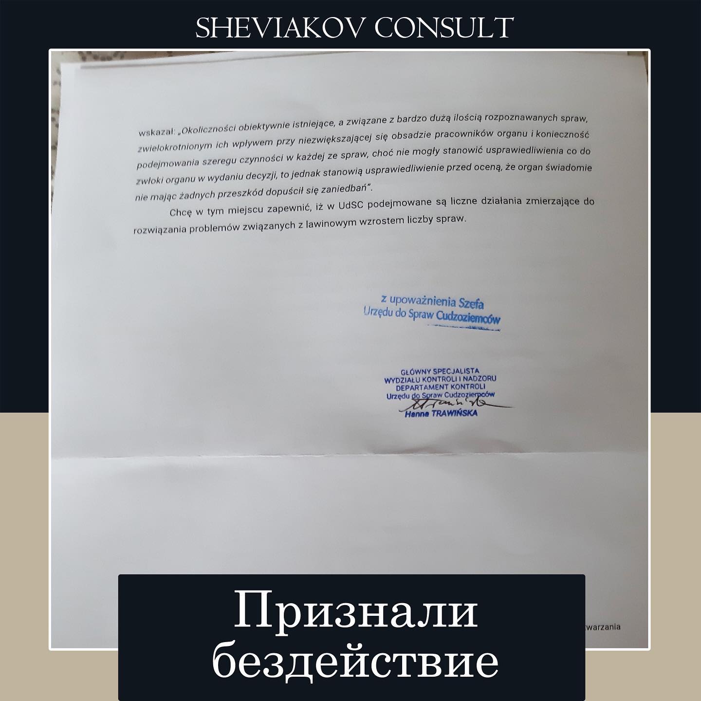 Szef Urzedu do Sprawy Cudzoziemców в течении 9 месяцев бездействовал (апелляция была подана 21.02.2020). 25.11.2020 была написана жалоба и уже 09.12.2020 апелляция была рассмотрена, указаны 5 документов которых не хватало в деле для выдачи положительного решения и признано что жалоба является обоснованной. ?