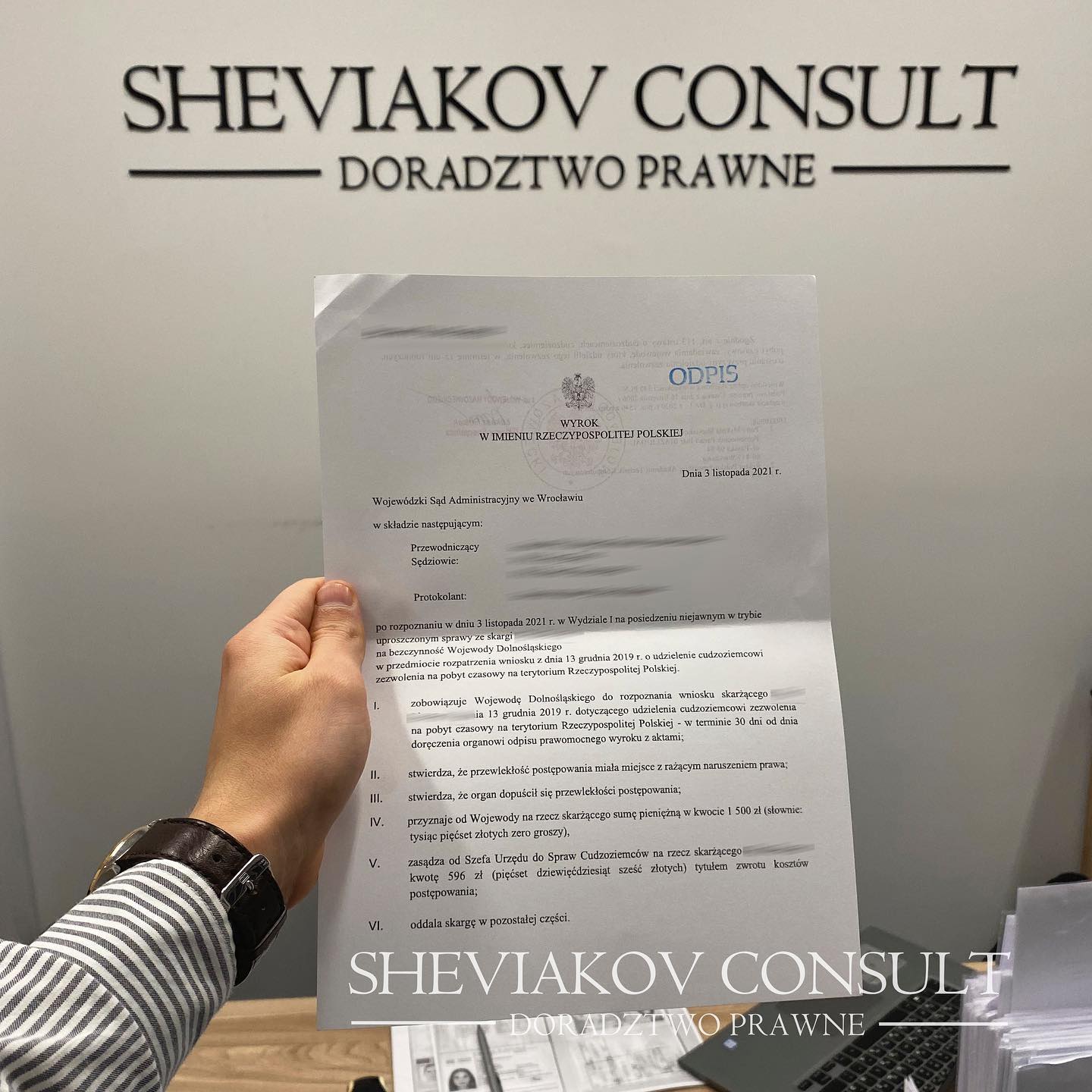 12.05.2021 к нам обратилась семья иностранцев в связи с долгим ожиданием на решение по картам побыта в городе Вроцлав. Муж с женой и маленьким ребёнком ожидали на карты побыта с 13 декабря 2019 года. В конце мая мы подготовили 3 жалобы на бездействие и проинформировали Ужонд, что в случае дальнейшего бездействия будет подан иск в Суд.