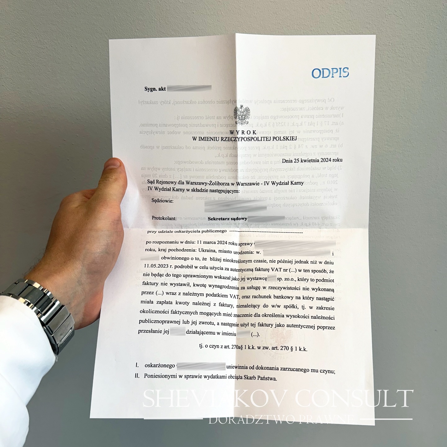 25.04.2024 года Sad Rejonowy Warszawa - Wola выдает приговор, согласно которому утверждает, что вина подозреваемого, не была полностью подтверждена материалами дела ?