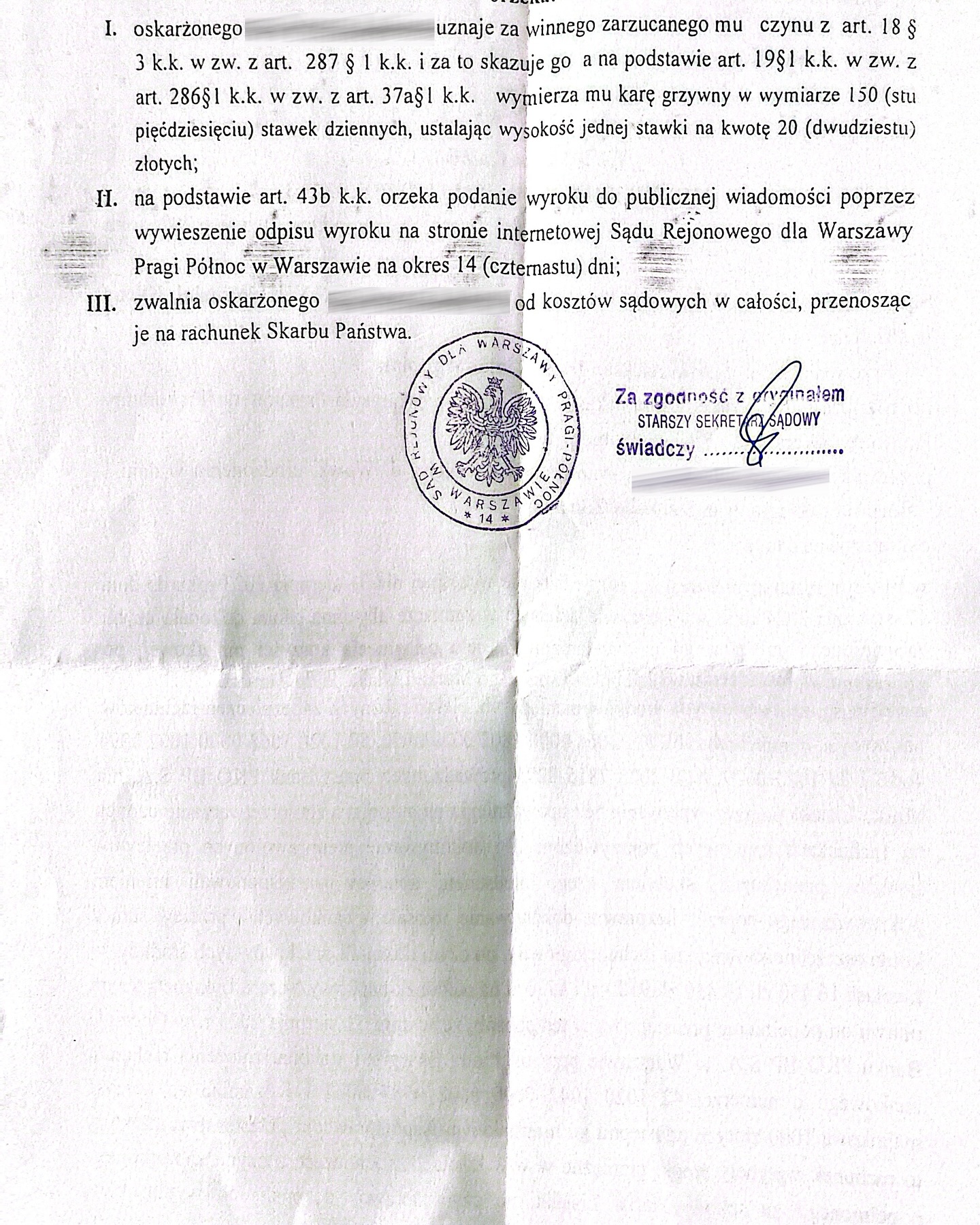 Суть дела: Наш клиент, гражданин Украины, был обвинен в пособничестве в компьютерном мошенничестве по статьям 286 §1 и 287 §1 Уголовного кодекса Польши.