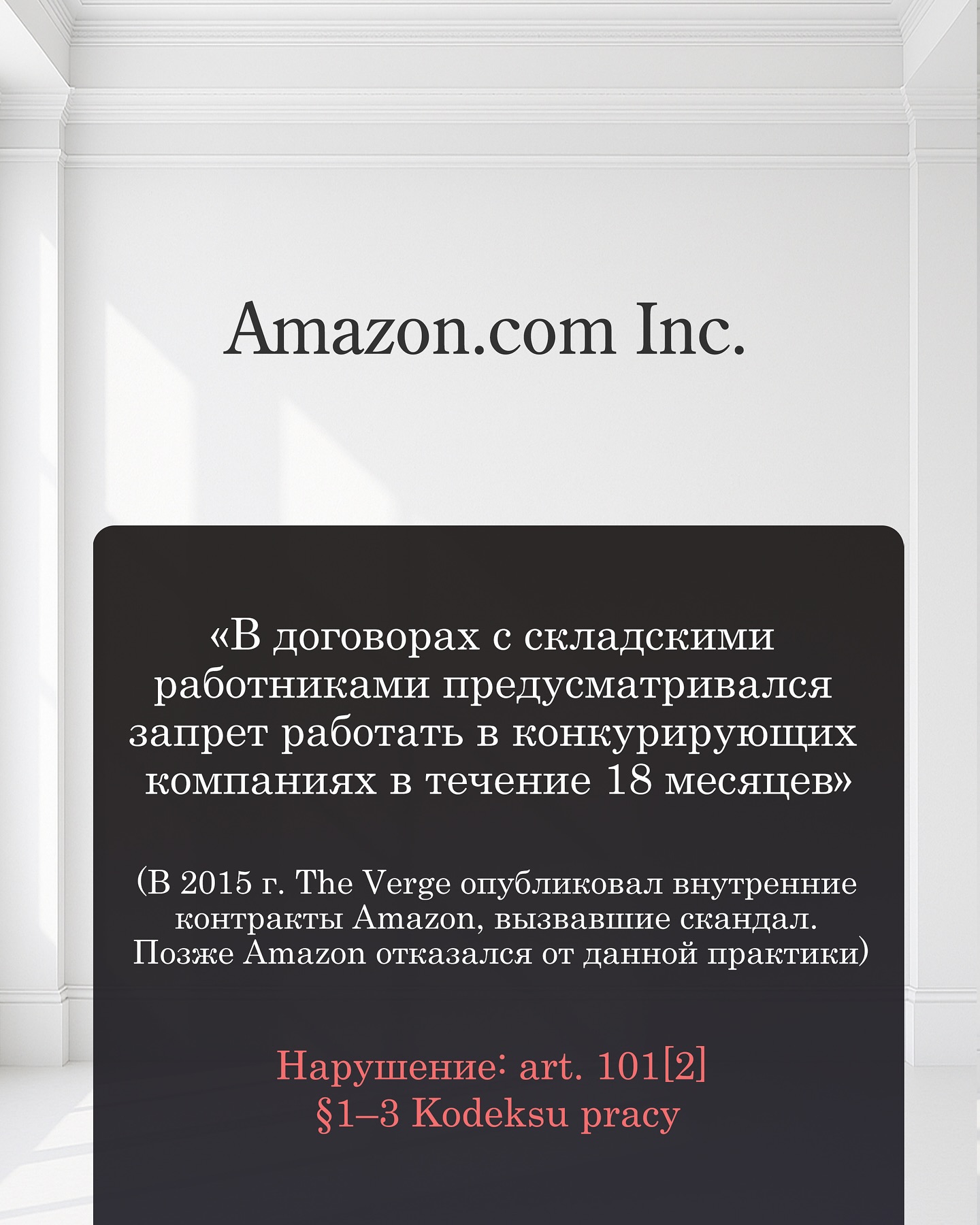 Нарушение: art. 101² §1–3 Kodeksu pracy.