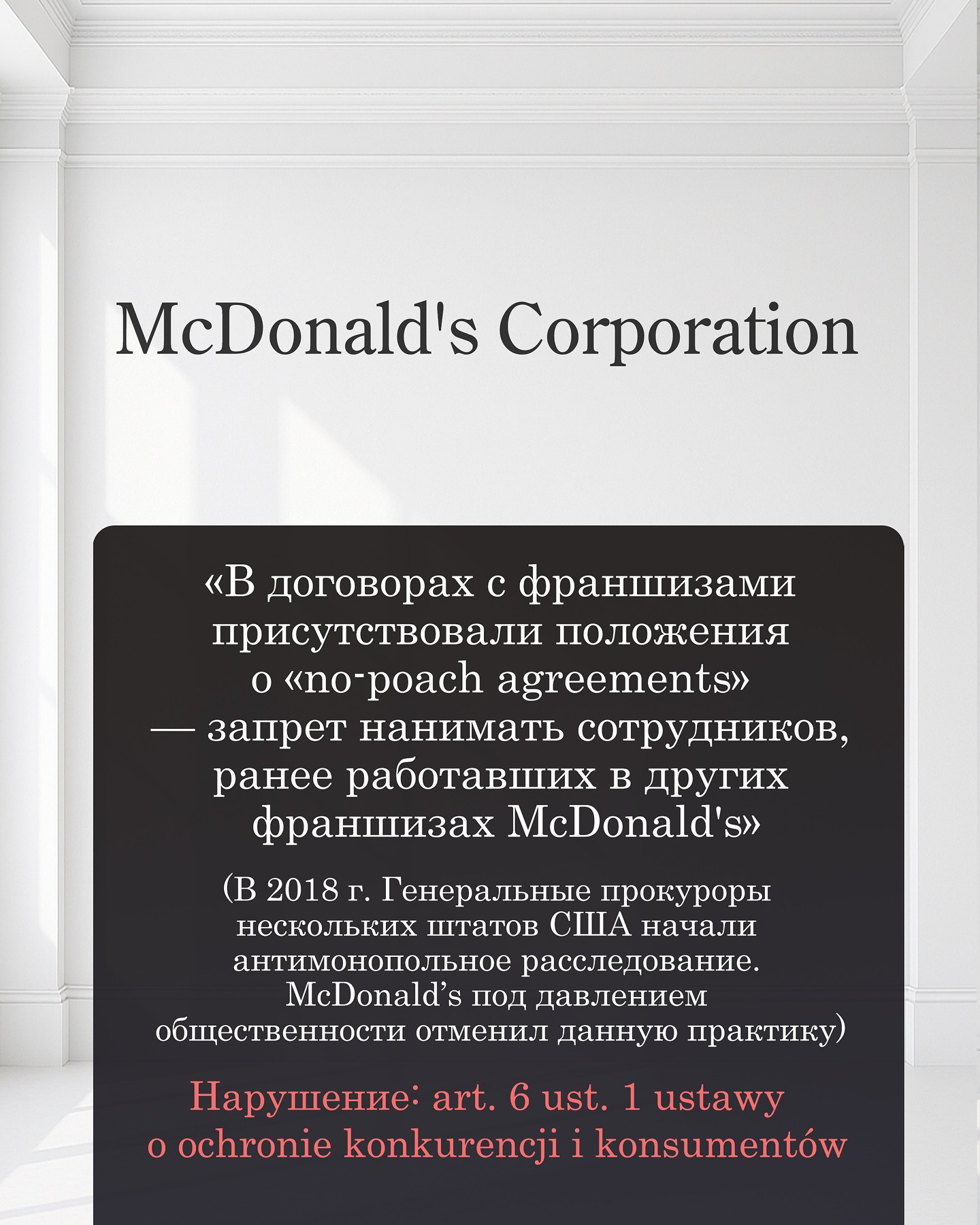В карусели приведены примеры известных компаний, уличенных в использовании недопустимых условий (и какие нормы при этом нарушались).